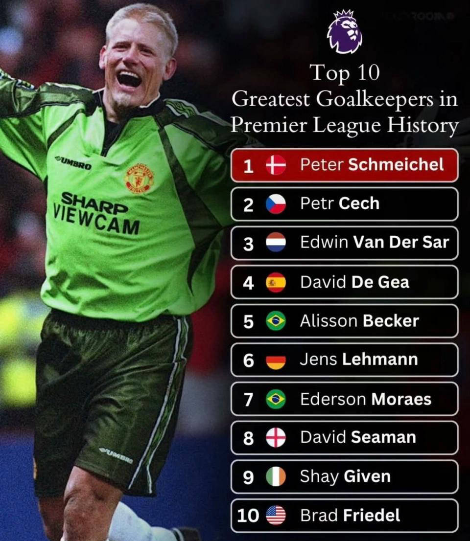 整体来看,这份榜单的前几位安排较为合理,舒梅切尔以其时代的统治力和关键比赛中的表现独树一帜,切赫和范德萨则凭借长期高水平输出紧随其后,符合大众认知。然而,对于排名中后段的门将来说,排名确实存在一些争议。德赫亚被排第四似乎略显偏高,他在巅峰期确实极具影响力,但整体团队荣誉以及霸主地位不如前三者稳固;而阿利松和埃德森虽然表现抢眼,能力非凡,但考虑到英超履历深度及关键比赛经验积累,与希曼、吉文这样长期担纲重任的门将相比,略显急躁。此外,希曼和吉文的排名都被压得过低,前者在阿森纳时期表现极为关键,后者则一直为多支球队撑起后防防线,两人的排位完全可以上升数位。莱曼的位置属于合理范围,但他排在阿利松和希曼之前,也难免引发不同声音。弗里德尔排名第十,更像是认可其稳健表现,但缺乏能够推至更高排位的冠军光环。