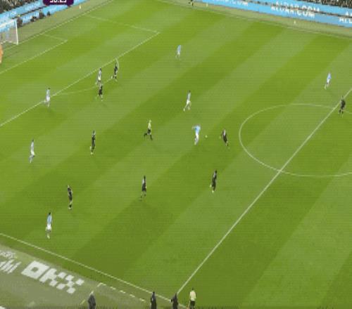 仅仅过了6分钟,哈兰德回撤做球,塞门约左路推进后送出妙传,奥赖利高速插上单刀挑射,曼城将比分扩大到了2-0。短短数分钟内,客队后防彻底被打崩。