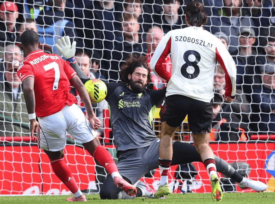 比赛刚开始不久,诺丁汉森林就获得绝佳单刀机会,只可惜奥多伊的射门被门将化解。利物浦逃过一劫。哈钦森在禁区内也获得好机会,只是他的射门质量太差,被门将没收了。随后,伊戈尔-热苏斯的绝佳机会被破坏。而哈钦森的极限小角度射门也是被门将化解。半场结束,比分依然是0-0!
