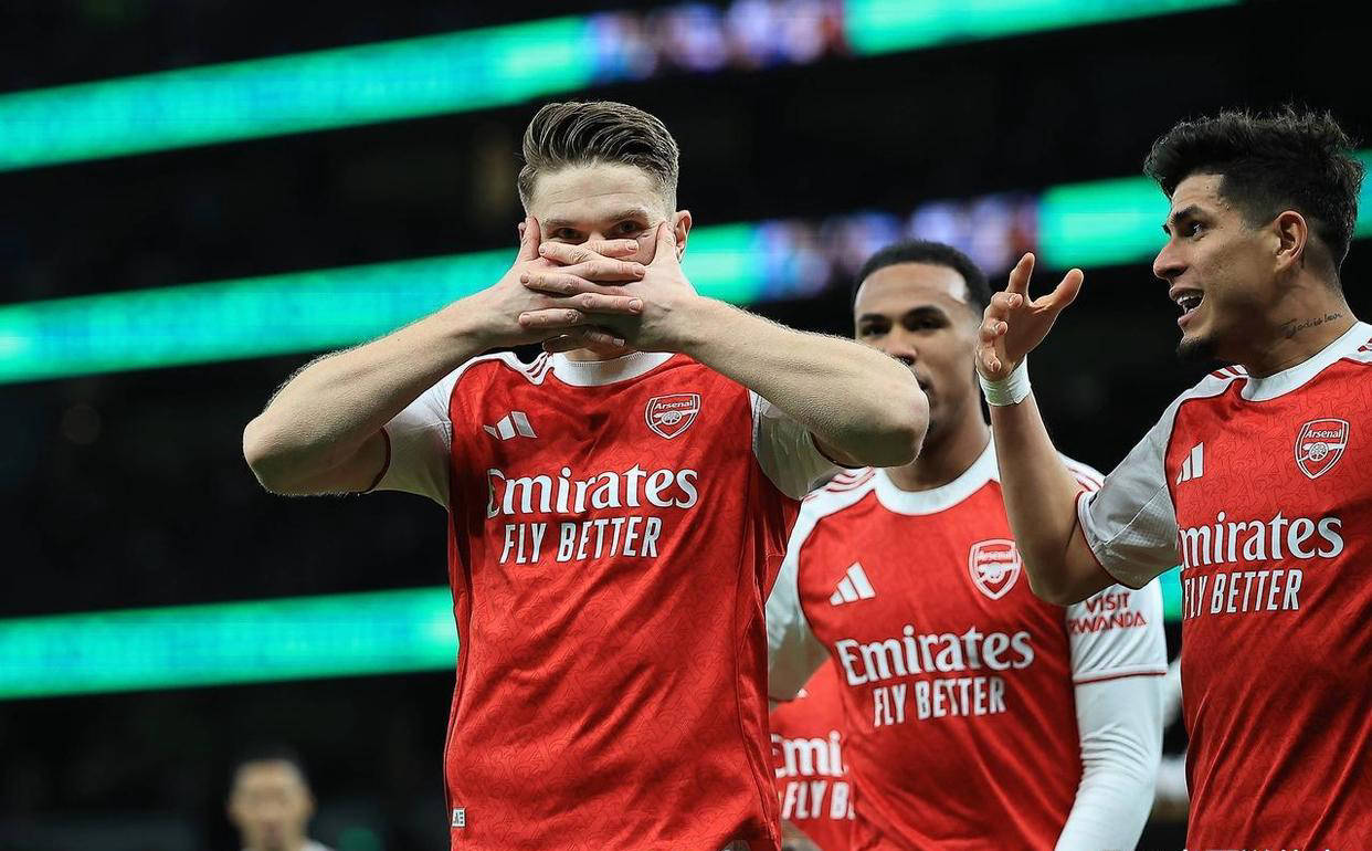 不过仅仅3分钟后,阿森纳后防出现失误,赖斯回防时带球被穆阿尼抢断,穆阿尼快速突破禁区内大力抽射,热刺迅速扳平比分为1:1。下半场伊始,阿森纳高举攻势,第46分钟,延贝尔精准斜传助攻哲凯赖什禁区外围得球,后者冷静调整后妙射入网,将比分改写为2:1。第59分钟,热刺防线再次失误,埃泽断球后横传萨卡,尽管门将扑救及时,但帕利尼亚失误漏球,埃泽轻松推射得手,阿森纳扩大领先优势至3:1。补时阶段,阿森纳持续施压,厄德高带球推进并斜传,哲凯赖什禁区前沿接球后闪开防守球员,大力兜射再下一城,完成梅开二度,最终阿森纳锁定4:1胜局。