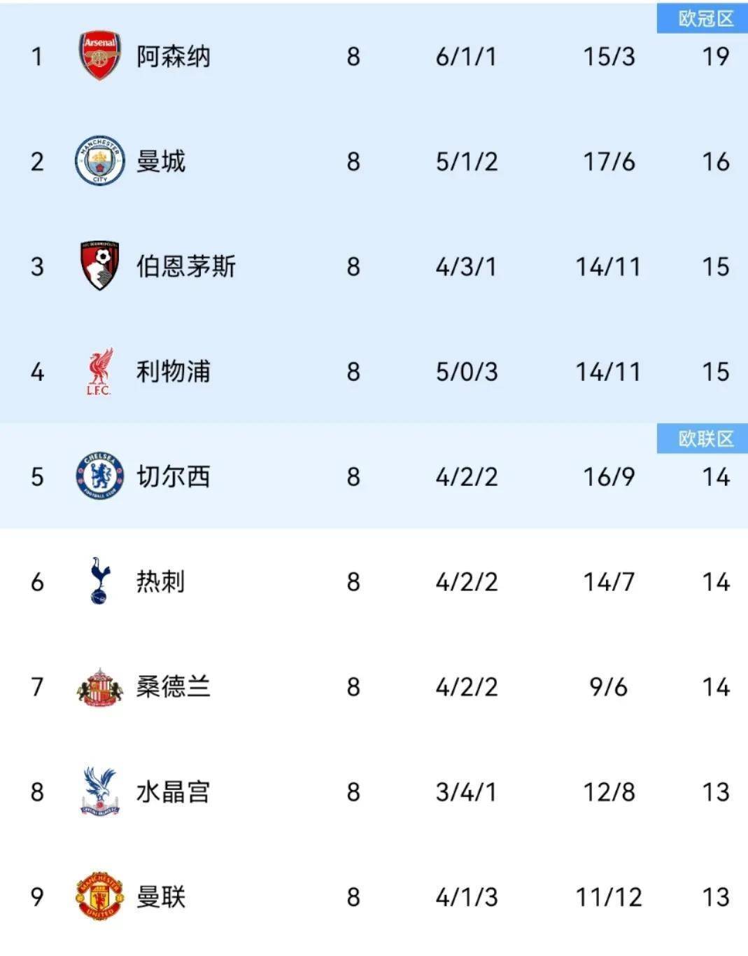 曼城则依靠哈兰德的爆发紧追不舍。 挪威前锋本赛季前8轮轰入11球,追平个人保持的队史纪录。 但蓝月亮的隐患在于稳定性:本赛季他们已先后被伯恩茅斯和利物浦逼平,导致在积分榜上无法持续领跑。