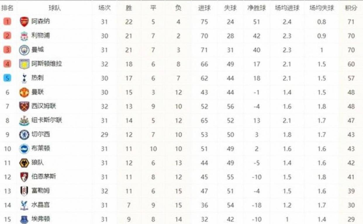 英超直播,英超赛程,英超积分榜,英超比分预测,曼联利物浦直播/覆盖2025年英超联赛所有比赛,提供免费高清中文直播入口、最新赛程安排、实时积分榜、比分预测与波胆分析,聚焦曼联、利物浦、曼城、阿森纳等豪门动态。现在阿森纳在英超积分榜上领先曼城5分,可这优势看着线。曼城少赛一场,26轮53分,赢16平5输5,净胜球 30。就在刚结束的比赛里,阿森纳客场对狼队,本来领先两个球,结果补时被扳平,2-2收场。