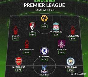 除了争冠和曼联的换帅风波,英超其他赛场也有故事。 在足总杯第四轮,切尔西客场4-0大胜赫尔城,强势晋级。 球队新援内托上演了帽子戏法,其中还包括一记罕见的角球直接破门。 另一边,数据网站Whoscored评选出了英超第26轮的最佳阵容。 有意思的是,保级球队诺丁汉森林成为了最大赢家,共有埃纳、内科·威廉姆斯和埃利奥特·安德森三名球员入选。 这反映出在联赛冲刺阶段,中小球队的球员往往能爆发出惊人的能量。